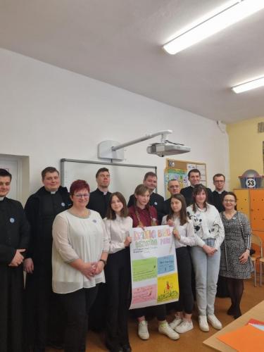 W godzinach popołudniowych klerycy udali się do katolickiej szkoły u św. Pankracego, która znajduje się w Cieplicach. Pani Katechetka Anna Pierunek opowiedziała o postępach dzieci w edukacji religijnej i w życiu duchowym, zaprezentowała plakaty wykonane przez uczniów, a także zaproponowała wspólny śpiew. Potem Ksiądz Dyrektor Mariusz Majewski oprowadził uczestników wyjazdu po szkole, pokazując sale lekcyjne oraz wyposażenie, jakie szkoła posiada.