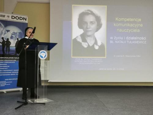 W dniu 20 kwietnia 2022 roku w Dolnośląskim Ośrodku Doskonalenia Nauczycieli we Wrocławiu – filia w Jeleniej Górze odbyła się konferencja poświęcona bł. Natalii Tułasiewicz, która została ogłoszona patronką nauczycieli w Polsce. W wydarzeniu tym wzięli udział przedstawiciele jeleniogórskiego środowiska oświatowego, w tym nauczyciele i katecheci, a także zaproszona młodzież. Ks. Jarosław Kowalczyk wygłosił wykład na temat: „Pozwól się zainspirować – czyli do czego ludziom są potrzebni święci patroni?”. W dalszej części ukazano życie bł. Natalii jako swoisty drogowskaz dla dzieci młodzieży i nauczycieli. Dziękujemy Organizatorom za zorganizowanie konferencji i zaproszenie do udziału w niej.