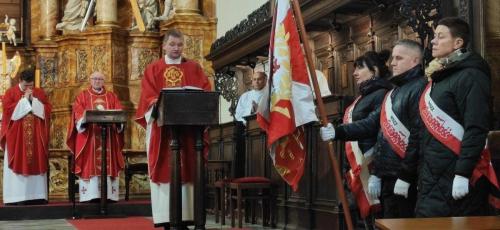 W liturgiczne wspomnienie bł. Księdza Jerzego Popiełuszki, w bazylice św. Erazma i Pankracego w Jeleniej Górze na uroczystej Eucharystii zebrali się przedstawiciele NSZZ Solidarność Rejonu Jeleniogórskiego oraz dyrektorzy i nauczyciele szkół znajdujących się na terenie naszej parafii. W 38. rocznicę męczeńskiej śmierci Patrona Ludzi Pracy dziękujemy Bogu za Jego poświęcenia dla Kościoła i Ojczyzny, a jednocześnie dziękujemy za ludzi Solidarności, za to że trwają wiernie na straży tych ideałów, w imię których życie oddał bł. Ks. Jerzy. To nasze zgromadzenie na mszy św., nasza modlitwa, to też wyraz wdzięczności za powołanie nauczycieli i wychowawców; to okazja by wypowiedzieć słowa uznania i dziękczynienia za codzienny trud wkładany w wychowanie młodego pokolenia– powiedział we wstępie ks. dziekan Bogdan Żygadło.