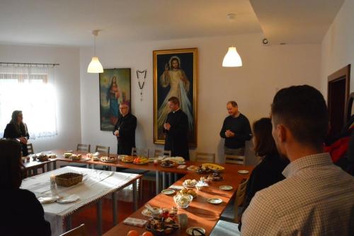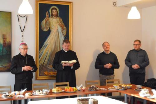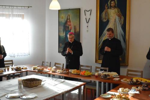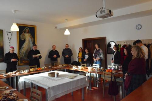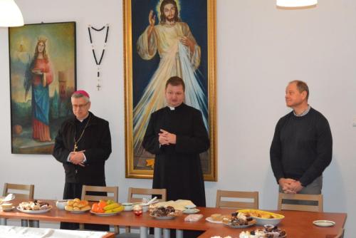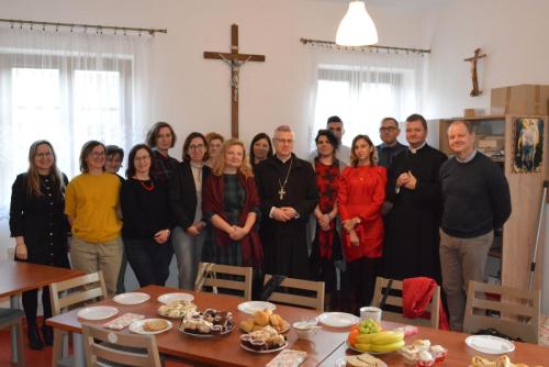 W sobotę, 7 stycznia 2023 roku, po przerwie świątecznej, odbyły się zajęcia na Podyplomowych Studiach Teologiczno-Katechetycznych w Legnicy. Wcześniej słuchacze wzięli udział we Mszy świętej pod przewodnictwem Biskupa Legnickiego Andrzeja Siemieniewskiego w kościele pw. Matki Bożej Królowej Polski. Po Eucharystii miało miejsce spotkanie w sali Beniaminek, podczas którego uczestnicy składali sobie życzenia świąteczne i noworoczne, przełamali się opłatkiem i śpiewali kolędy.