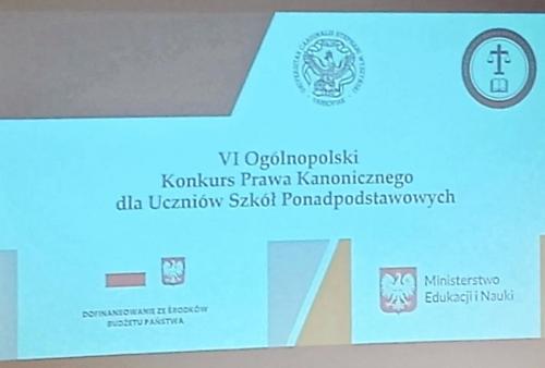 W dniu 31 maja 2022 roku 18-osobowa grupa uczniów I Liceum Ogólnokształcącego w Legnicy pod opieką katechety, pana mgra-lic. Pawła Olszewskiego, reprezentowała Diecezję Legnicką podczas finału VI edycji Ogólnopolskiego Konkursu Prawa Kanonicznego. Wydarzenie miało miejsce na Uniwersytecie Kardynała Stefana Wyszyńskiego w Warszawie. Zmagania z zagadnieniami dotyczącymi tematu tegorocznego konkursu „Nauczycielskie zadanie Kościoła” poprzedziła modlitwa. Po napisaniu testu młodzież brała udział w wykładzie prof. KUL dr hab. Anny Słowikowskiej, dotyczącym pojęcia świętości, omawianego na podstawie prawa kanonicznego. Uczniowie godnie reprezentowali naszą diecezję i wrócili z tytułem finalisty.