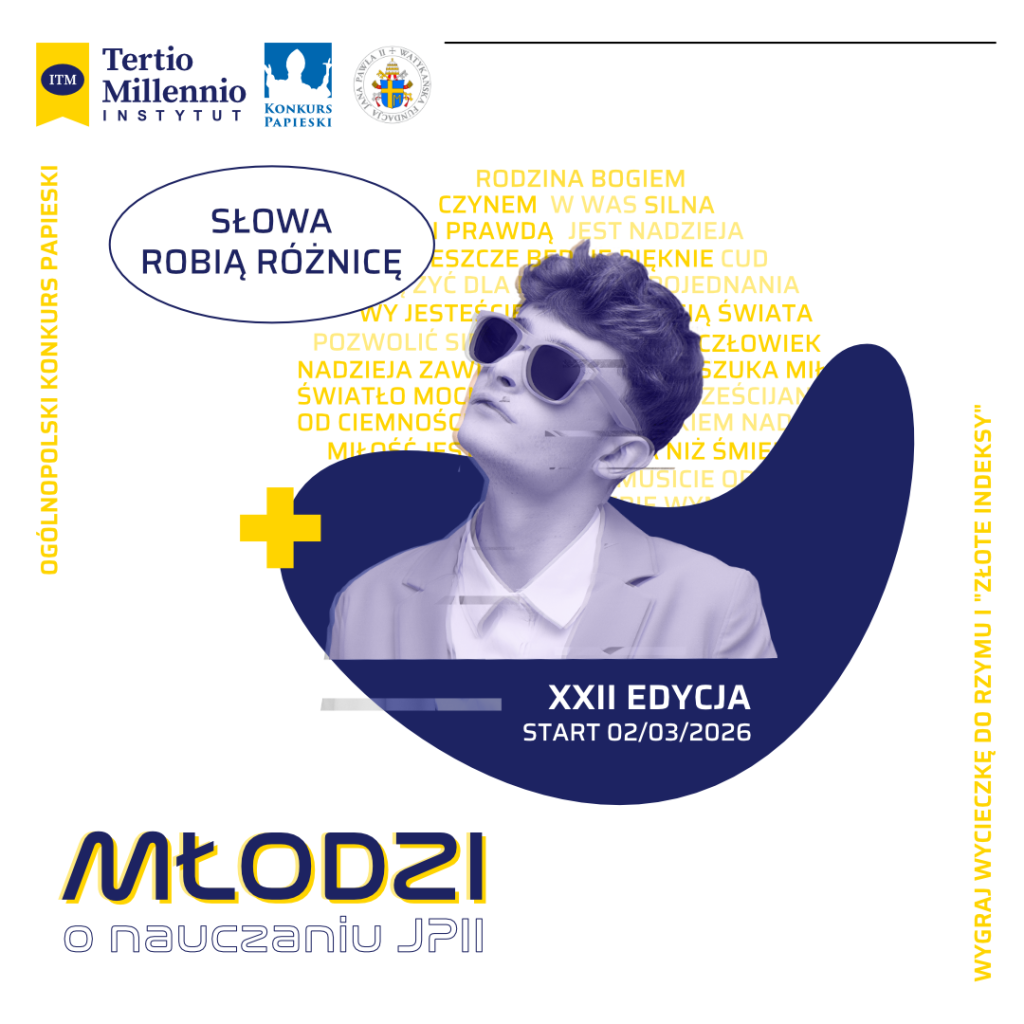 Konkurs Papieski to największy w Polsce projekt poświęcony nauczaniu Jana Pawła II, organizowany przez Instytut Tertio Millennio od ponad dwóch dekad. Jego celem jest przybliżanie młodzieży twórczości oraz biografii intelektualnej Papieża. Tegoroczna edycja odbywa się pod hasłem „Słowa robią różnicę”, zachęcając uczestników do refleksji nad odpowiedzialnością za słowa, znaczeniem dialogu, etyką komunikacji oraz rolą słowa w głoszeniu prawdy.