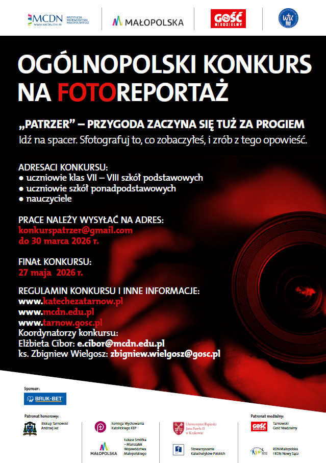 • Osoby do kontaktu: mgr lic. Elżbieta Cibor – nauczyciel konsultant MCDN e.cibor@mcdn.edu.pl; ks. Zbigniew Wielgosz – kierownik i redaktor Tarnowskiego Gościa Niedzielnego zbigniew.wielgosz@gosc.pl